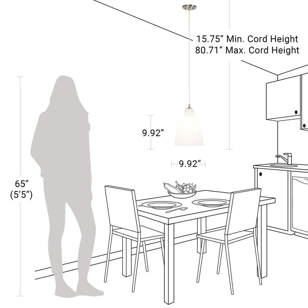 Add just the right amount of light to your space with this transitional style 1-light mini pendant light with an aged brass finish and a bell-shaped milk glass shade, this classic piece is perfect for hanging multiples over your kitchen island, above your sink or over your bedroom night stands, or anywhere else you may need a little extra illumination. This pendant has a hanging height of 87.63 in. at full hanging height, with a 9.92 in. tall shade. If you’re looking for a transitional pendant light, look no further. This is the hanging pendant fixture for you. This fixture is hardwired, meaning it blends seamlessly into your space: but don’t worry about a complicated installation. Our instruction manuals are clear and easy to follow, because we pride ourselves on the best possible lighting experience.