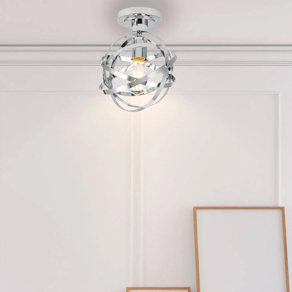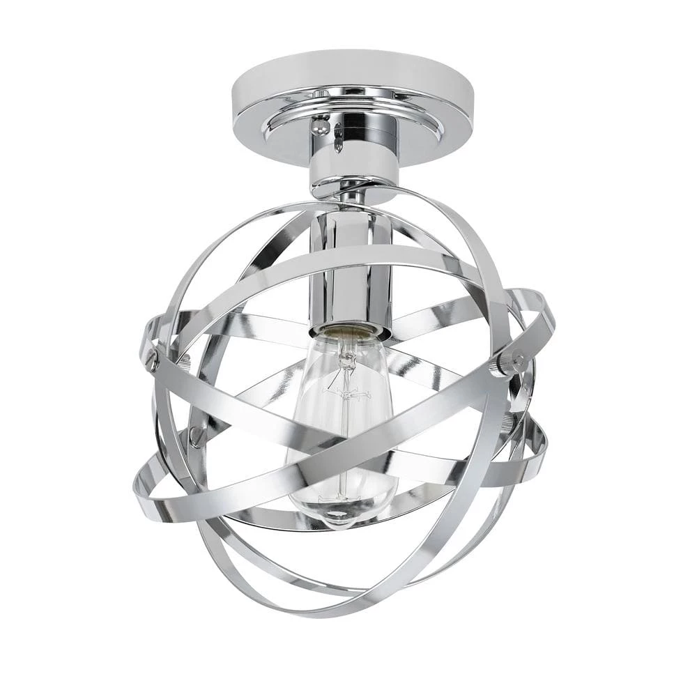 The mid-century modern design of this 1-Light Semi-Flush Mount is sure to make a statement in any home. Featuring a chrome finish and distinct elliptical rings around an industrial style bulb (sold separately) to create this contemporary charmer. This versatile ceiling light is easy to install and great for a bedroom, living room, den, dining room, foyer or kitchen. Updating the lighting fixtures in your home is the most effective way to accomplish a striking, yet simple, Do It Yourself (DIY) remodel.