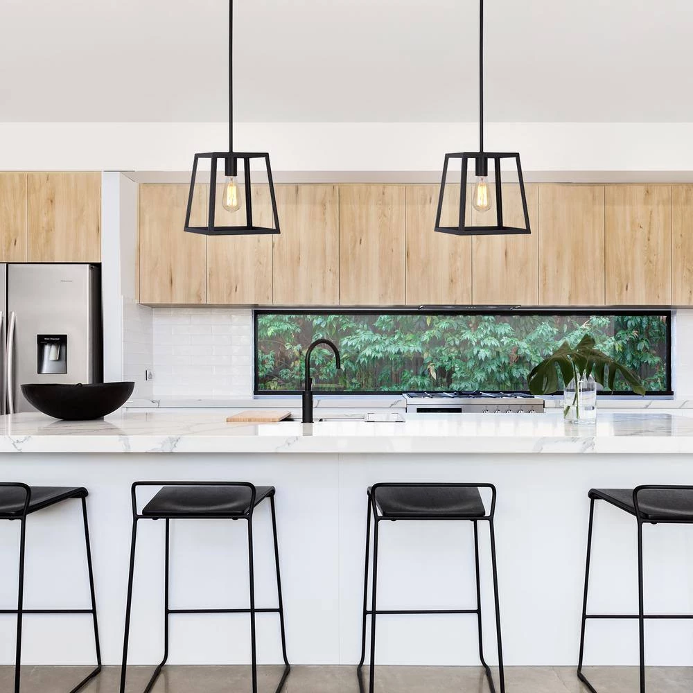 - Industrial farmhouse-inspired 9 in. open-cage pendant is perfect for pairing multiples over a kitchen island or hanging 1 over a dining table