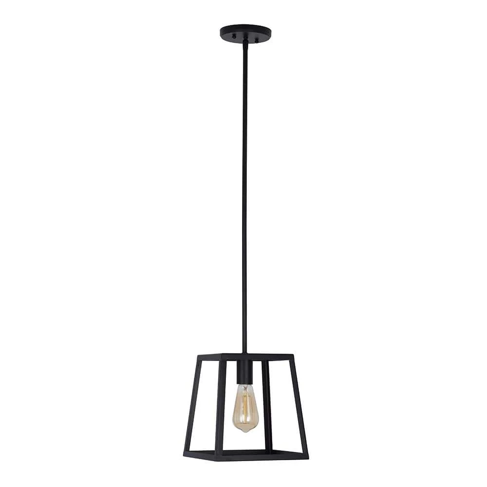 Radiate inviting vintage-inspired illumination in your home with the Cresswell Lighting Open Iron Mini Pendant Light. The black metal pendant boasts a 7.25 in. rectangular open iron cage shade that perfectly frames a minimalist style filament bulb. The throwback design of the industrial era is ideal for blending with farmhouse, rustic, or contemporary decor. The hardwire pendant light hangs from a 54 in. rod and has a metal canopy that mounts to any standard ceiling junction box using the included mounting hardware. It includes one 60-Watt incandescent equivalent LED filament bulb.
