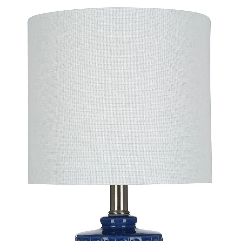- Transitional style ceramic table lamp finished with a blue glaze and layers of texture is the perfect accent piece to any room