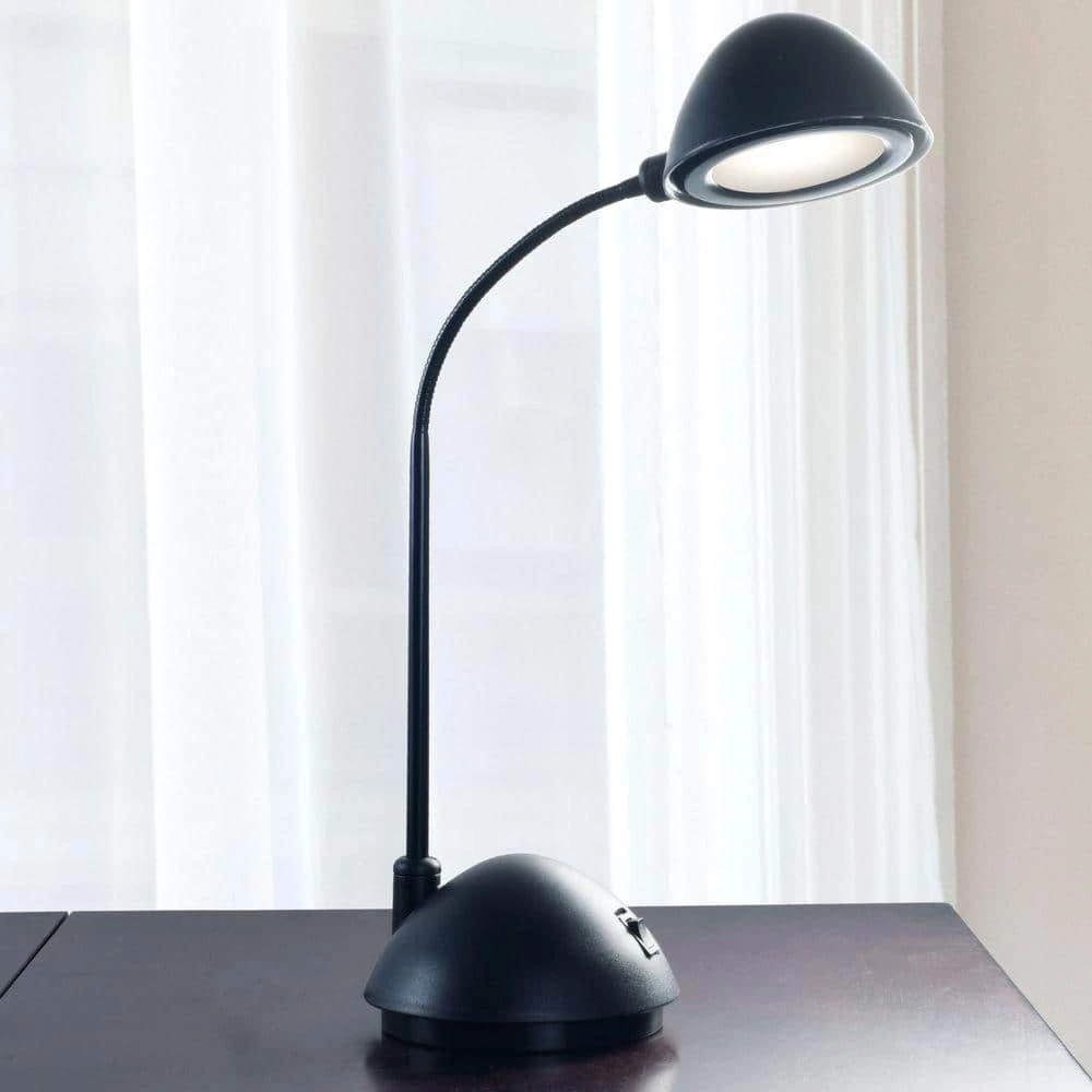 Lavish Home provides a compact and easy to use Modern Gooseneck Desk Lamp in Black that brings bright colors and a modern design into your home with the simple flip of a switch. The bendable gooseneck and provided 6 LED light bulbs make it easy to have the amount of light you need, exactly where you need it! The rounded shade and base add a fun and unique touch while supplying the perfect light for reading, working, or doing detailed artwork.