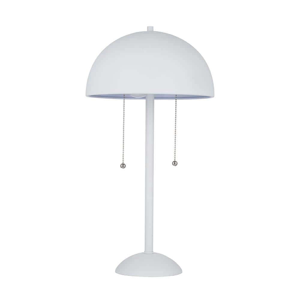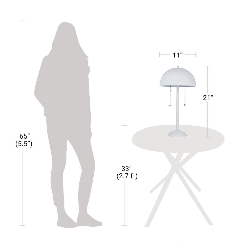 - Table lamp’s simple elegance shines through its perfect blue dome, styled with an on-trend matte finish, a long, slender stem connects the top with a curved base, and the 2 bulbs can be turned off and on via 2 pull chains