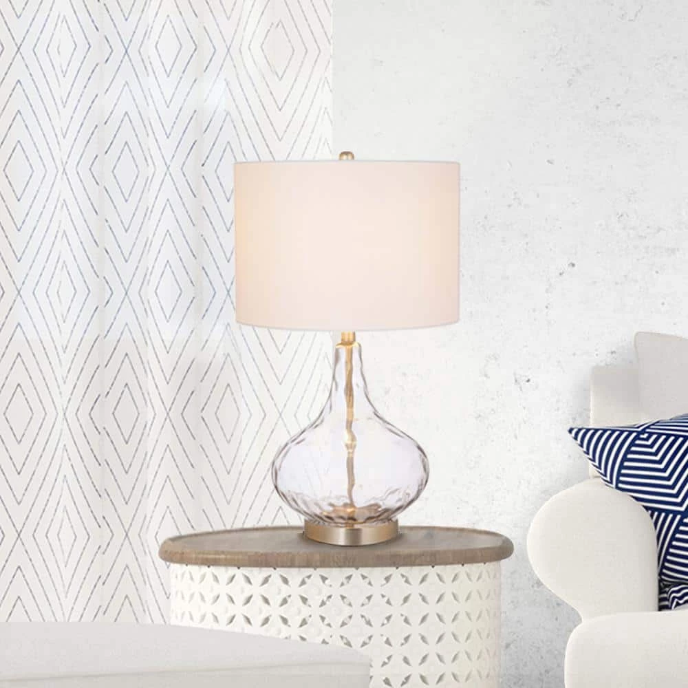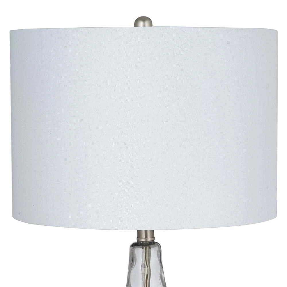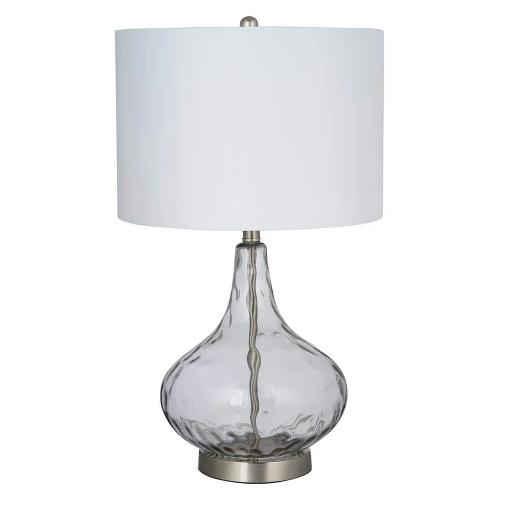 Bring a sophisticated update to any living space with this on trend textured glass table lamp. With its crisp white linen drum shade and smoked gray glass surface add visual interest and a soft modern look to any room dcor. Updating the light fixtures in your home is the most effective way to accomplish an alluring, yet simple, DIY remodel.