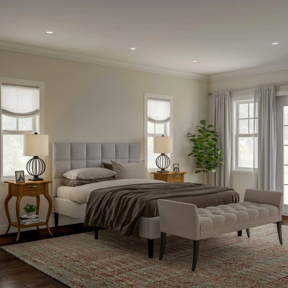 - PRODUCT DETAILS- Materials: Wrought Iron and Linen. Overall Dimensions: 13″ L x 13″ W x 26″ H. Shade Dimensions: 13″ L x 13″ W x 10″ H. Colors: Matte Black and Natural Linen. Set of 2. Includes 2 9W LED Bulbs.