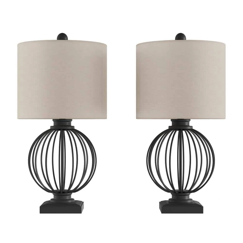 Instantly transform your space with stylish form and function with the elegant 26 in. Matte Black Wrought Iron Orb Open Cage LED Table Lamps (Set of 2) by Lavish Home. With a beautiful yet sturdy metal round open cage design with pedestal base and natural linen shade, the lamps provide warm ambient lighting for your entryway, bedroom, living room or home office. The lamps conveniently come with energy-saving, replaceable LED light bulbs. It’s a perfect matching 2-piece set that will add a modern rustic touch to the nightstands or end tables in any room.