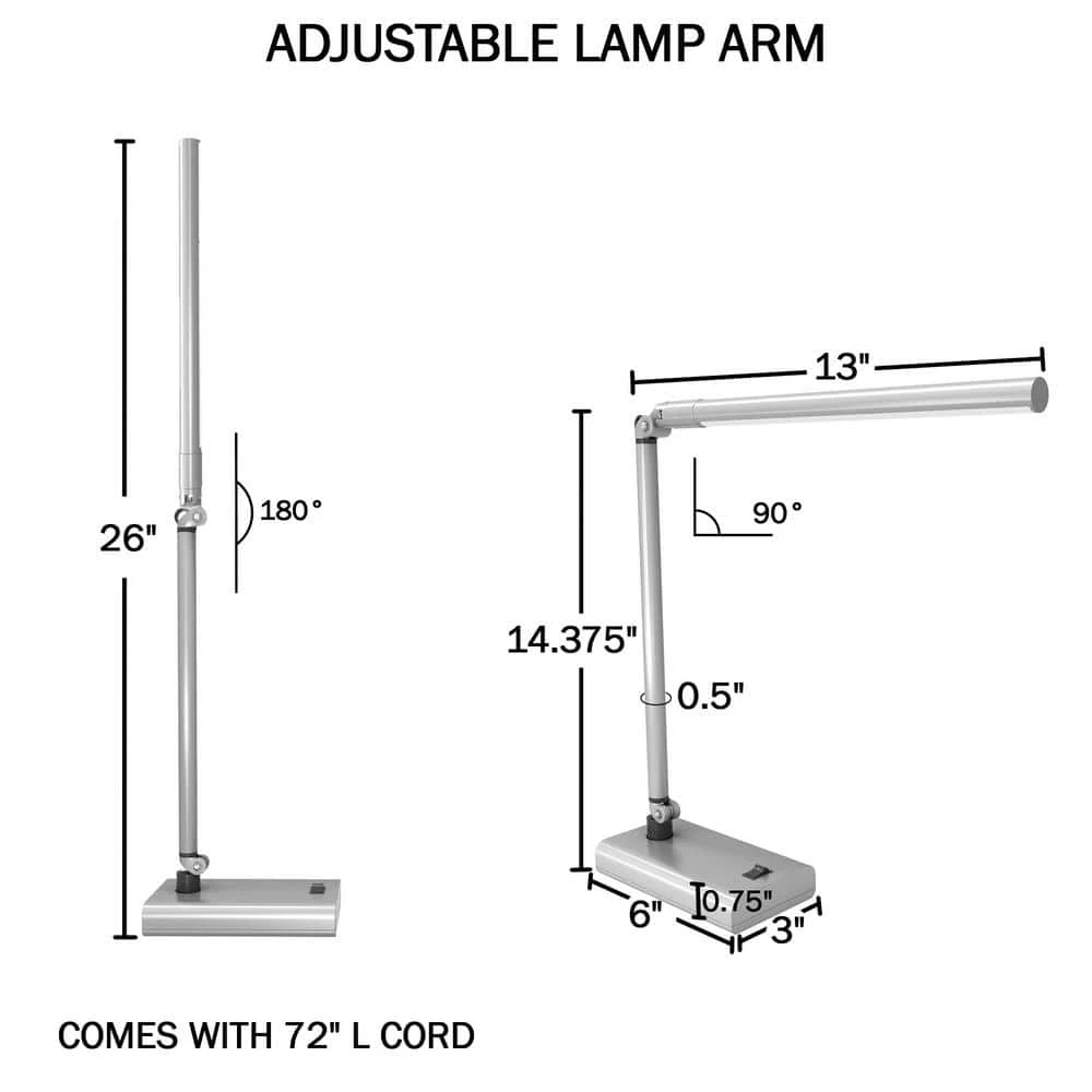 This modern desk lamp will bring style and function to your work space. The strip LED lighting gives you a wide range of light, while the adjustable and flexible arms allow you to target the light where you need it. The sleek design gives you the maximum amount of light while taking up a minimal amount of space. Easily folds for storage when not in use.