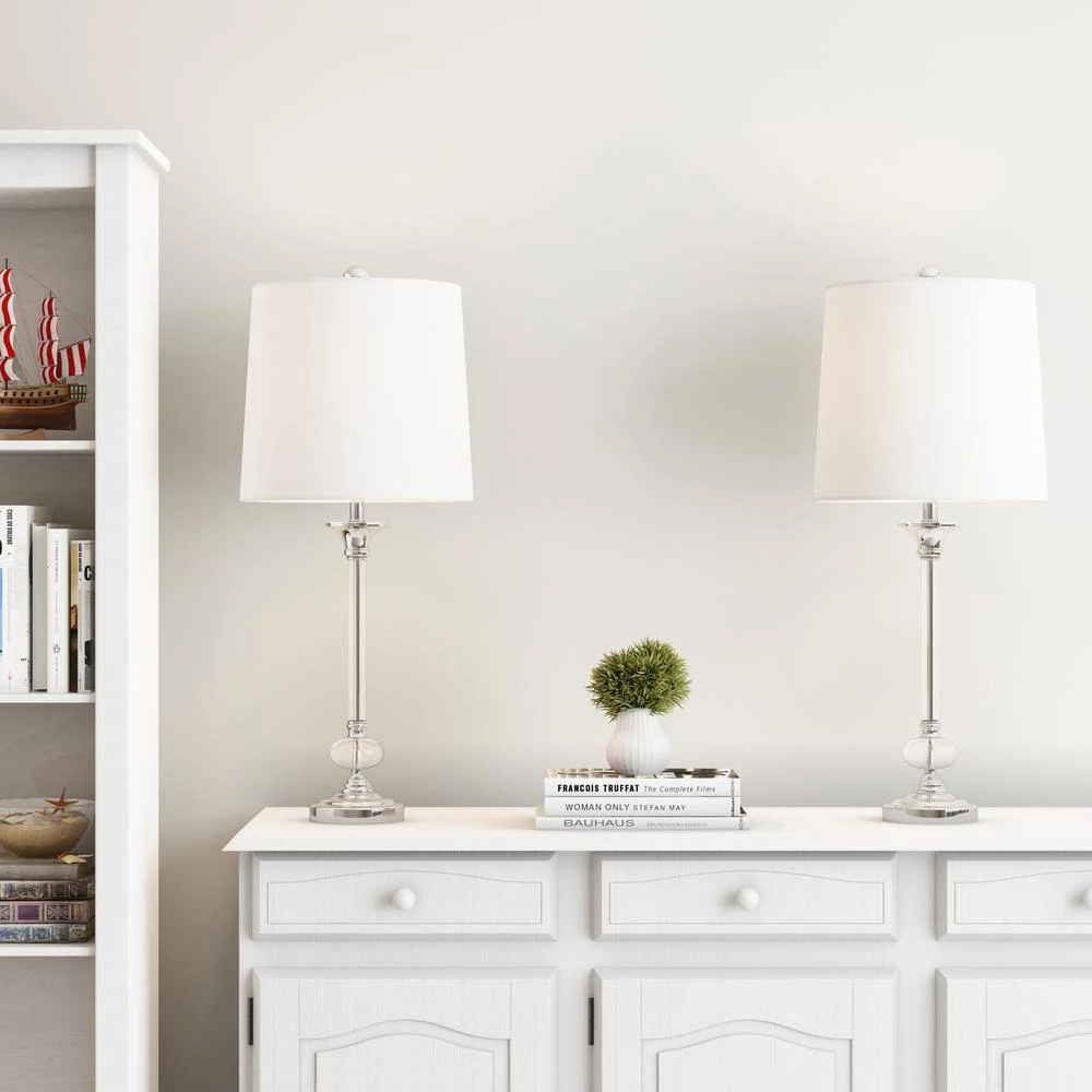 - MATCHING 2-PIECE SET- With two table lamps included, you can place the lamps separately in different rooms or utilize the matching set in one room for a more glamorous look. The included ivory shades are sure to complement any decor.