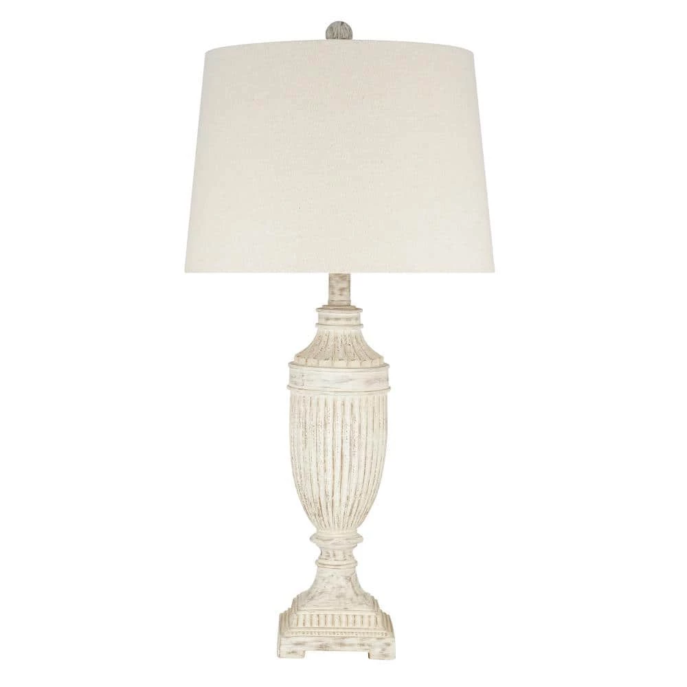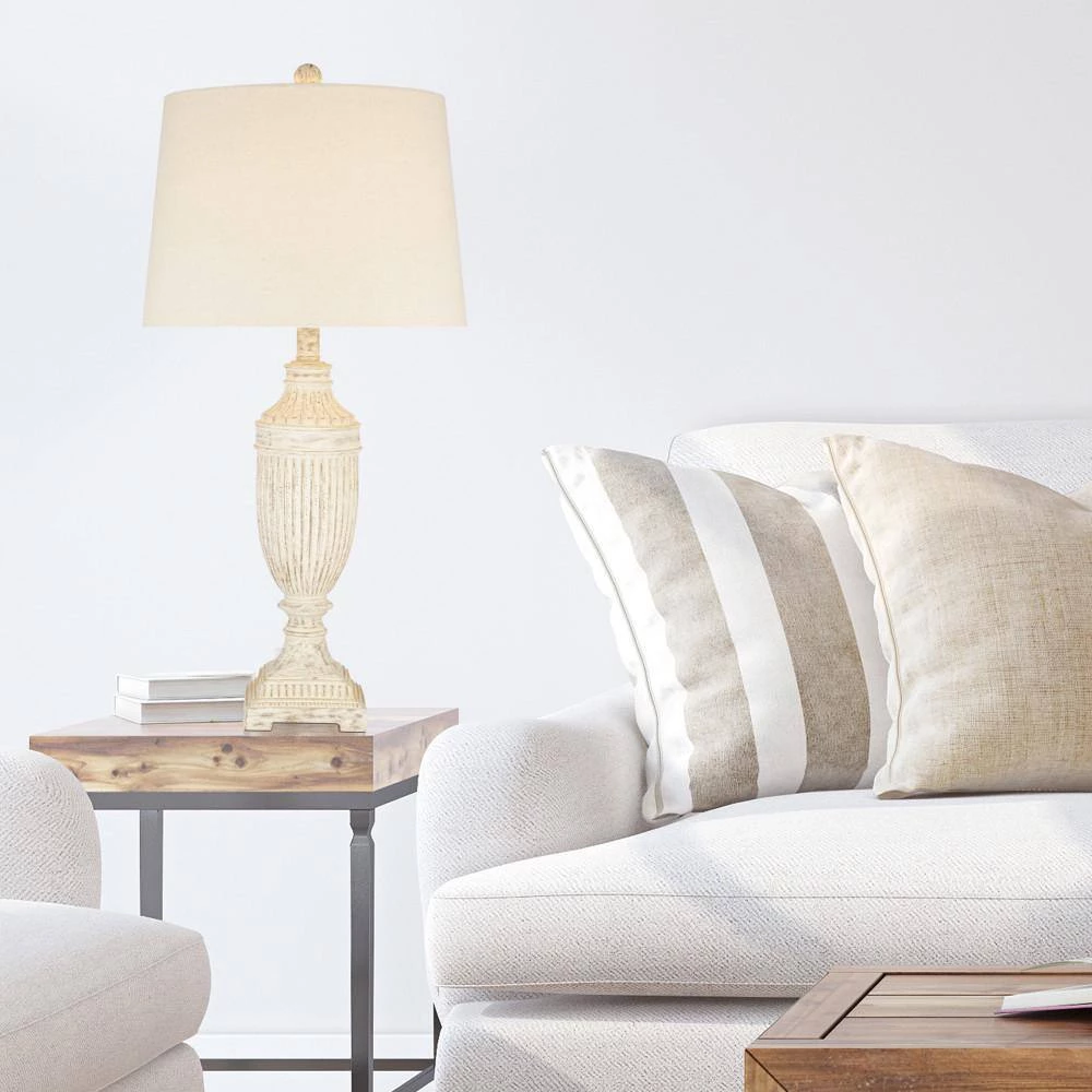 This rustic farmhouse style table lamp is the perfect finishing touch to any room in your home. A white wash finish on a textured resin base goes nicely with this oatmeal color linen shade. Updating the light fixtures in your home is the most effective way to accomplish an alluring, yet simple, DIY remodel.