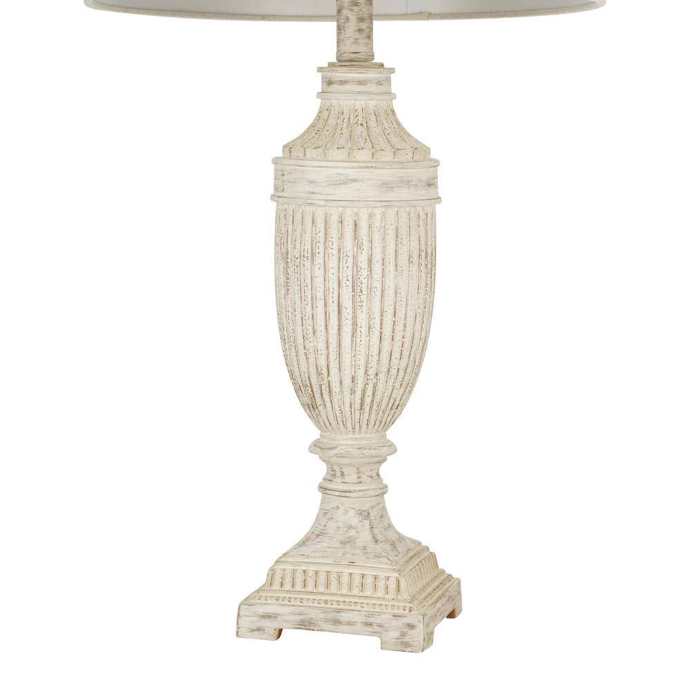 - Traditional table lamp in a white wash textured finish, resin construction, looks like real wood, perfect for shabby chic, rustic or farmhouse decor