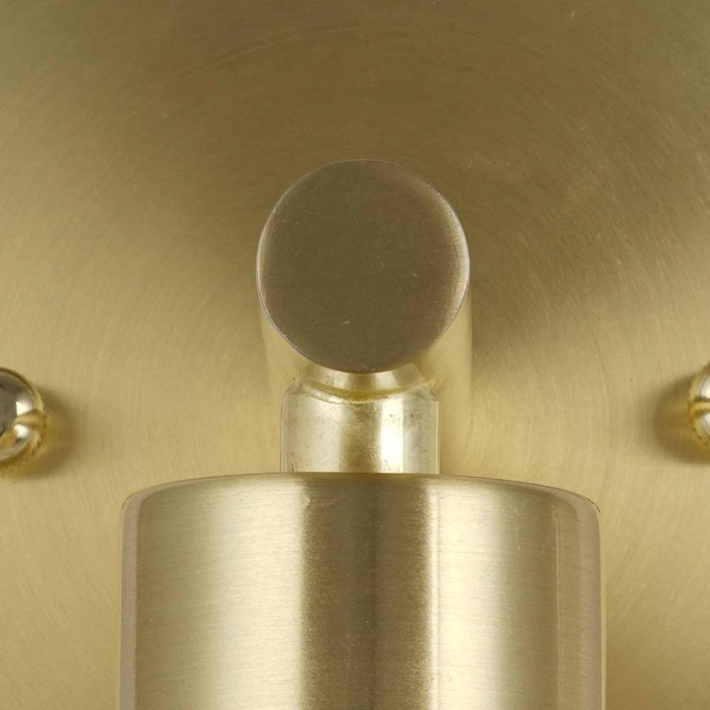 - Mid-century-modern metal wall sconce in a satin-brass finish