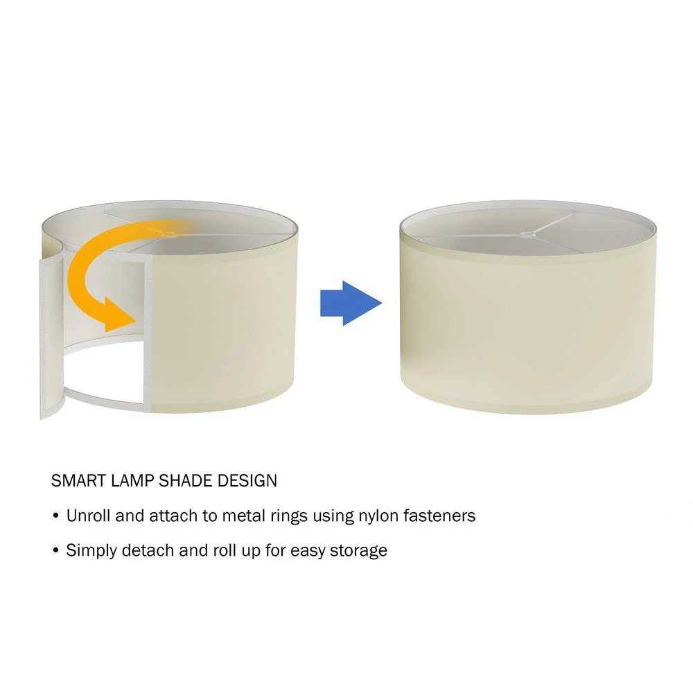 - ATTRACTIVE & DURABLE- The off-white lamp shade is uniquely designed to be removable with its nylon fasteners, for easy assembly and cleaning. The sturdy angled iron legs provide a stable base in a classy matte black finish that will flatter any room.
