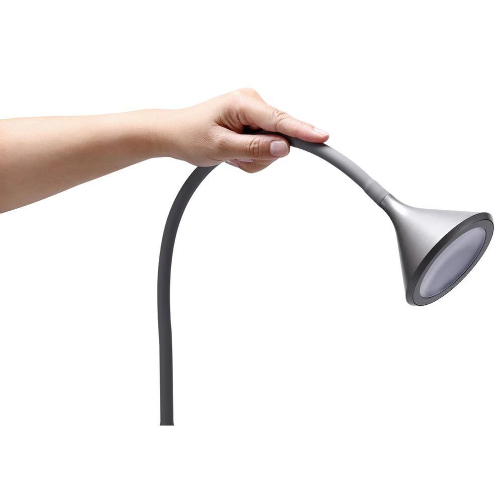 Boasting a contemporary design and brilliant LED illumination, this gray 58 in. minimalist floor lamp is an ideal lighting solution for any interior space. Its adjustable, silicone neck and heavy base allow you to create bright, focused light zones that are ideal for tasks, reading and crafts, while its modern design makes it the perfect accent lamp for any home or office. Engineered with PureOptics️ LED Technology, this unique floor lamp is eco-friendly and cost-efficient while providing years of flicker-free, indoor illumination that mimics natural daylight. To power the lamp on and off, simply use the convenient in-line foot switch located at the base of the lamp.