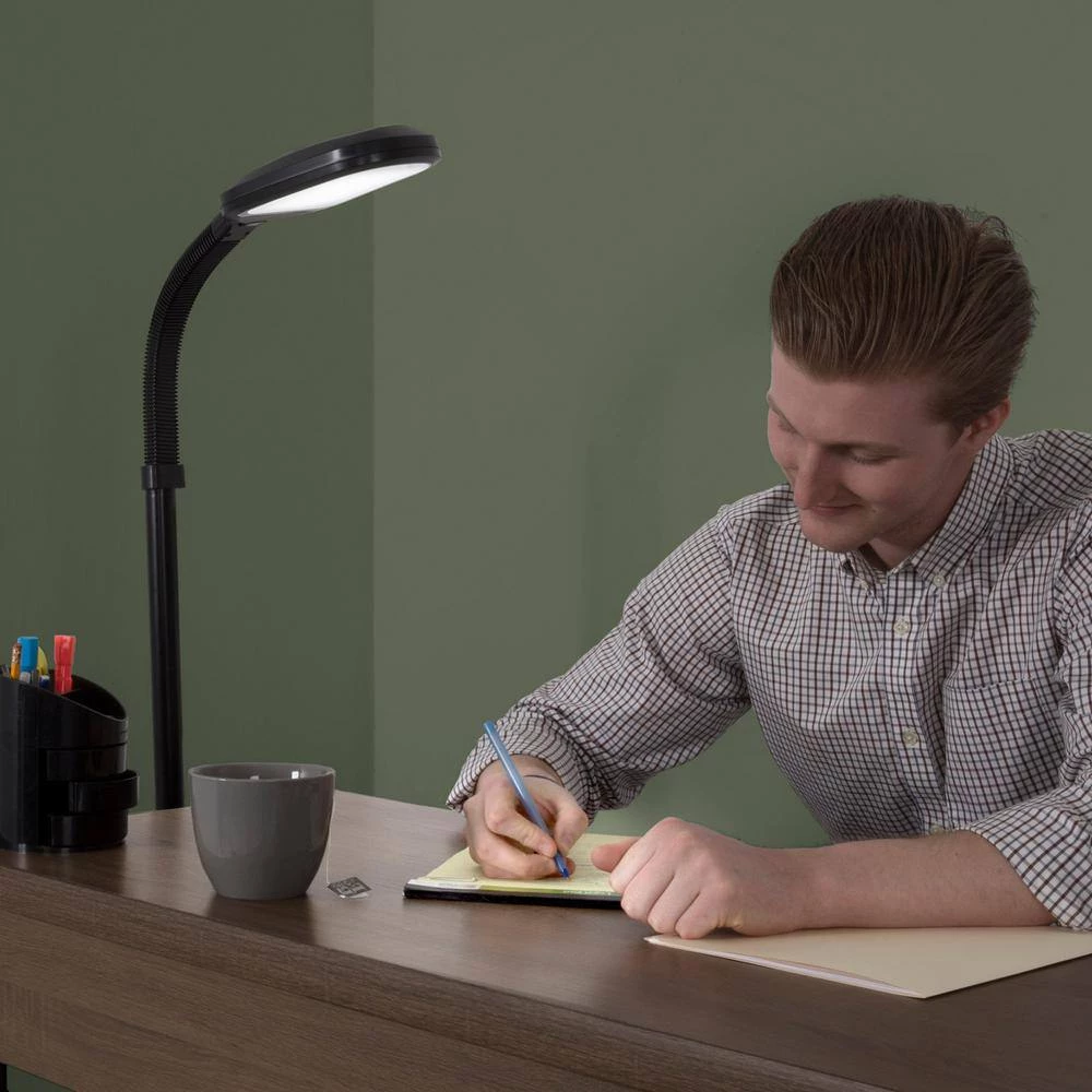 - APPROXIMATES NATURAL LIGHT – LED sun lamp provides pure bright, natural light, making it easier to see while eliminating eye stress and fatigue. The energy-saving non-replaceable LED-17W bulb in this lamp has 1400 lumens which is a light appearance of 6500K, equivalent to daylight and the natural sun. Bulb can last up to 30,000 hours! Perfect for working, reading, or intricate craftwork.