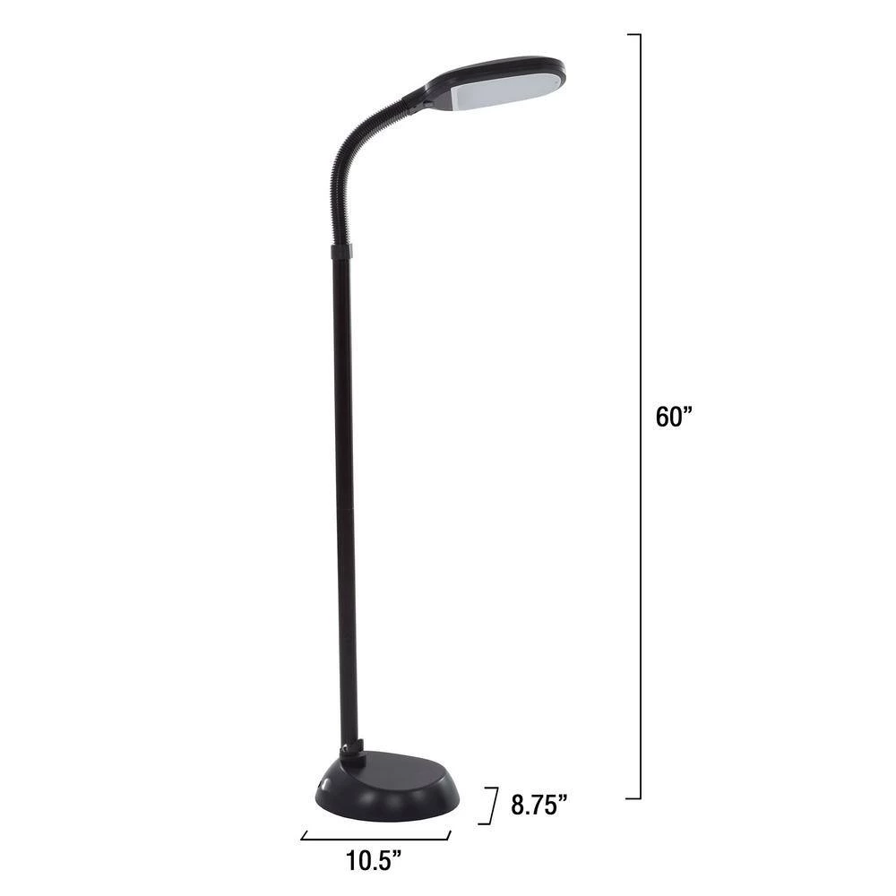 Lavish Home brings you form and function with the 60 in. LED Natural Full Spectrum Sunlight Gooseneck Floor Lamp with Dimmer Switch that produces pure bright white illumination making colors appear more vibrant while reducing eye strain and fatigue. The 17-Watt LED bulb in this lamp is more energy efficient than incandescent or fluorescent lights with a C.R.I. (Color Rendering Index) of 80-85 that needs no replacing lasting up to 30,000 hours. The LED Natural Full Spectrum Sunlight Reading Floor Lamp also offers a simple touch control panel with a 4-level dimmer, which allows you to adjust the brightness to cater to your various lighting moods. The flexible gooseneck design lets you adjust the lamp to any angle to direct light where you need it. Perfect for reading, working, or doing intricate craftwork. A must-have addition to your home or office, this lamp provides natural full spectrum daylight hues, brightening even rooms that have minimal sun exposure.