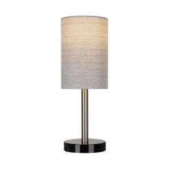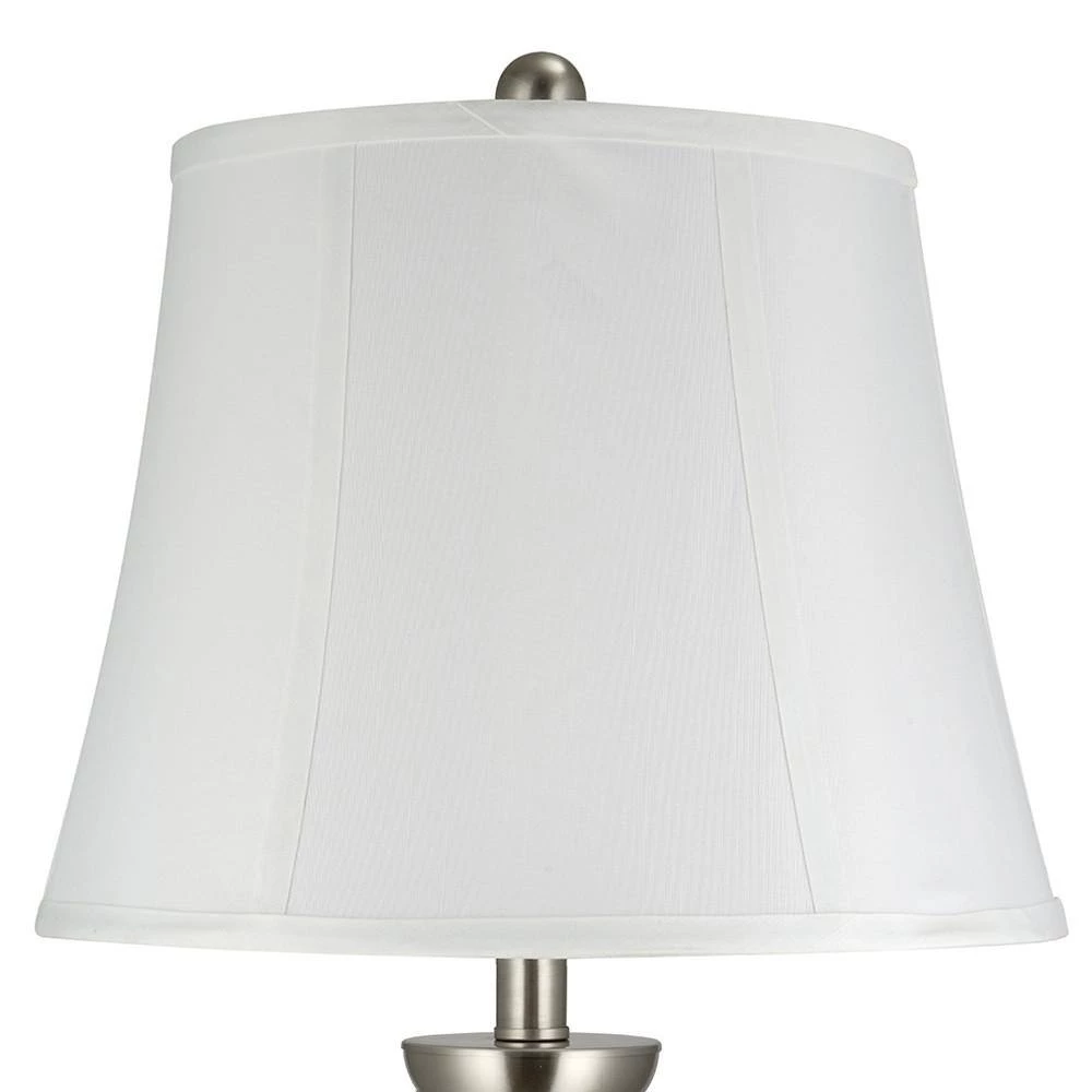 This classic floor lamp showcases tradition at its best with a brushed nickel finish and turned decorative fonts on the lamp body. The silken bell shaped shade finishes adds refinement to this timeless design. Try pairing together with its matching table lamp for a cohesive look.