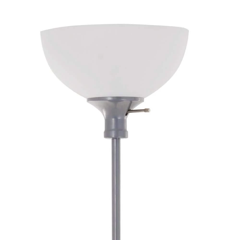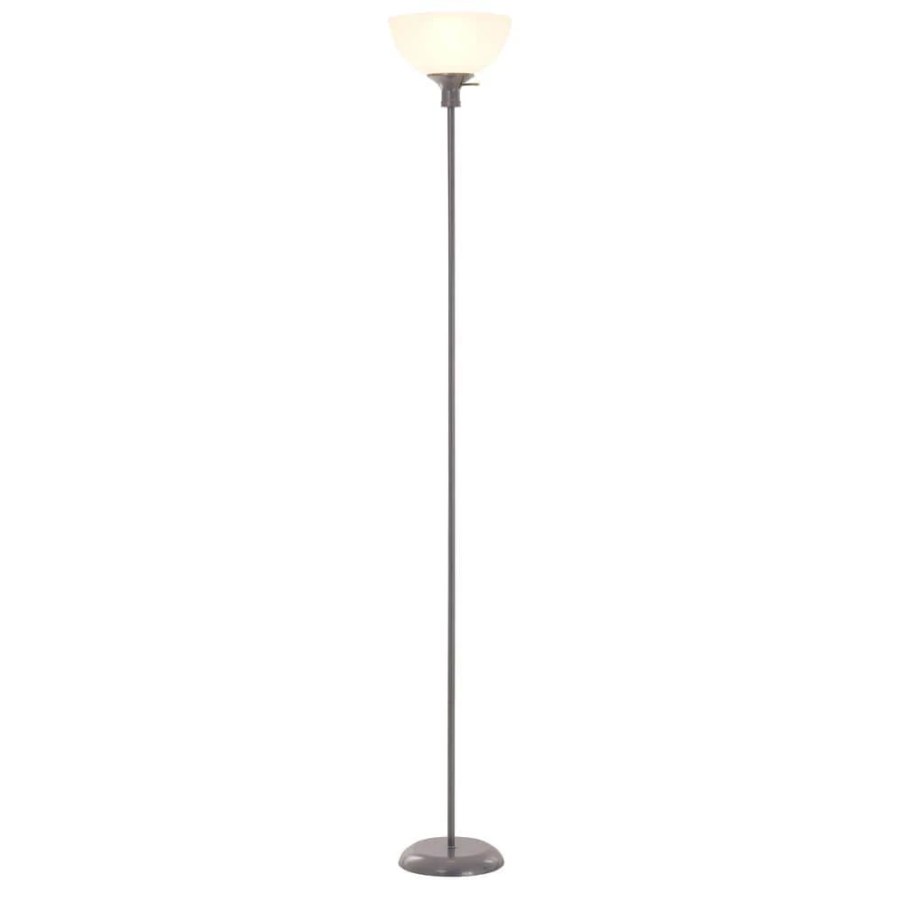Contemporary style meets legendary value. A painted Silver finish paired with a white bowl, plastic shade creates the minimalist allure for this Torchiere floor lamp 20641-000. Its on-trend design and clean lines rewards your residence with impeccable style and soft, ambient light. The 3-way switch offers dimmable functionality to meet your mood. Whether you prefer transitional or contemporary decor, this is an ideal fixture. Updating the light fixtures in your home is the most effective way to accomplish a striking, yet simple, do it yourself (DIY) remodel.