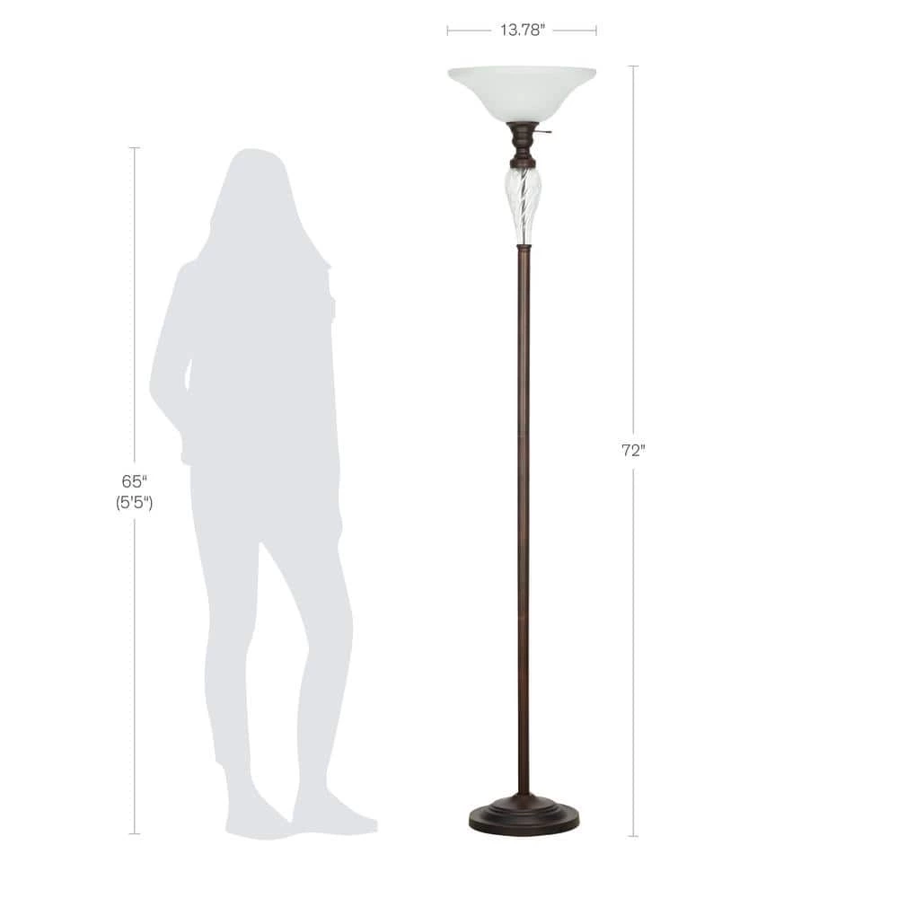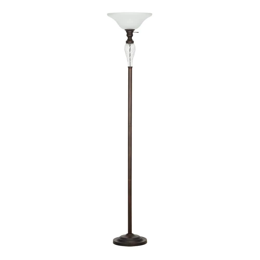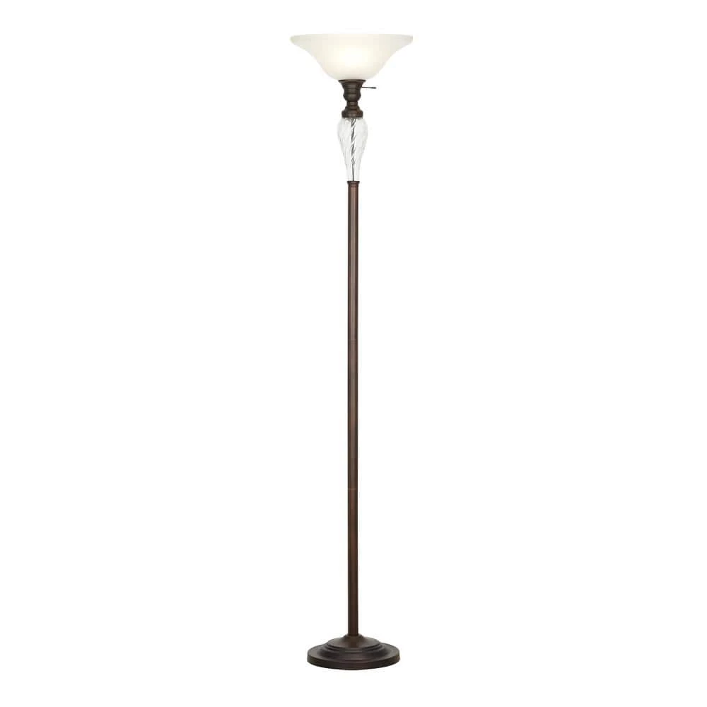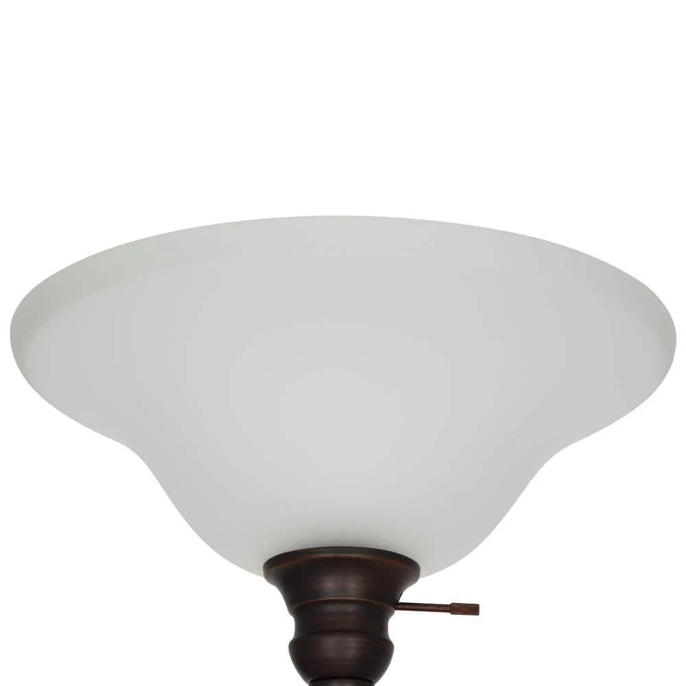 - Traditional floor lamp features a classic bronze metal body with a glass accent and a frosted glass shade, ideal for adding a touch of style to any room in your home