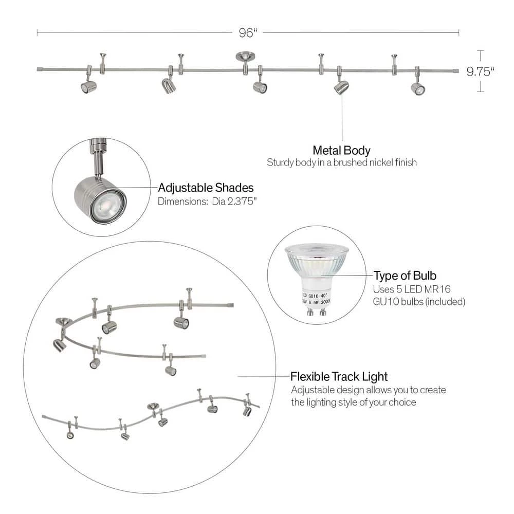 Furnish your room with distinct illumination with this versatile 5-light flexible track light. 5 fully adjustable shades and a flexible track bar allow you to customize the directional light where you need it most. This versatile lighting kit combines function with modern design. Updating the light fixtures in your home is the most effective way to accomplish an alluring, yet simple, DIY remodel.