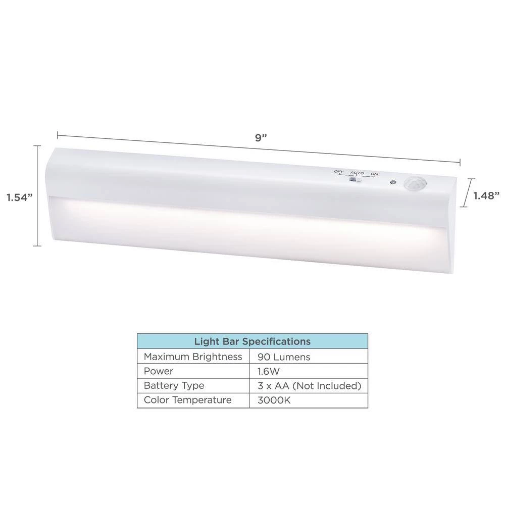 Looking to make your closet or pantry come to life with lighting? Well, look no further because the BLACK+DECKER PureOptics Battery Operated Light Bar Kit is exactly what you need! Whether you want to illuminate your laundry room, pantry, closet, storage room, attic – the opportunities are endless – this lighting kit features an optimal angled light bar that widely spreads light to illuminate more space in even the smallest of areas. Have your hands full with clothes or groceries? This light bar features three different settings that include automatic lighting with darkness and motion sensor, so all it takes is the quick wave of the hand to easily turn these lights on; you can even use it as night light. This easy to use kit only requires magnetic assembly with the provided mounting clip for frustration-free setup. This 1-pack of 9″ light bar is powered by 3 AA batteries, which means there are no wires, no mess, just a wireless, battery operated lighting kit that can transform any space – no matter the size – in just seconds! Simply peel and stick the light bar to seamlessly showcase any space of your choosing.