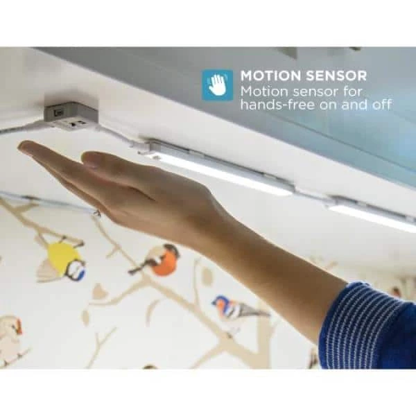 PureOptics Tool-Free LED Under Cabinet Lighting by BLACK+DECKER is the simplest way to bring brilliant illumination and modern, low-profile lighting into your home. Its revolutionary design allows for a DIY, three-step installation with no tools, drilling or wiring required, so can have invigorating, cool white lighting in your kitchen, bathroom, pantry, workshop (or practically any room) in a matter of minutes. Each ready-to-go kit includes ultra-thin LED light bars with 10 brightness levels and an on/off switch, a control box with a built-in motion sensor and an optional shut-off timer, a 24-Watt AC adapter, and a variety of wires and mounting clips.