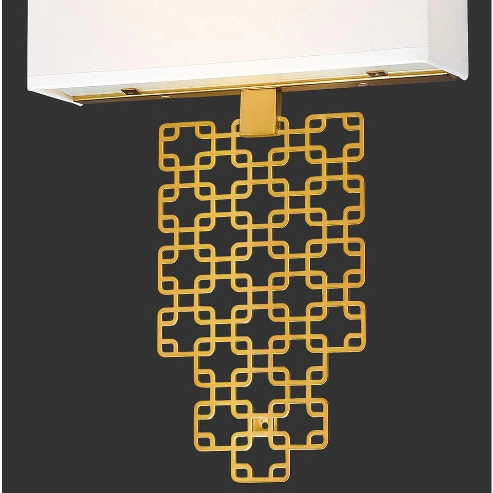 - Featuring an impressive honey gold finish and faux white silk diffuser