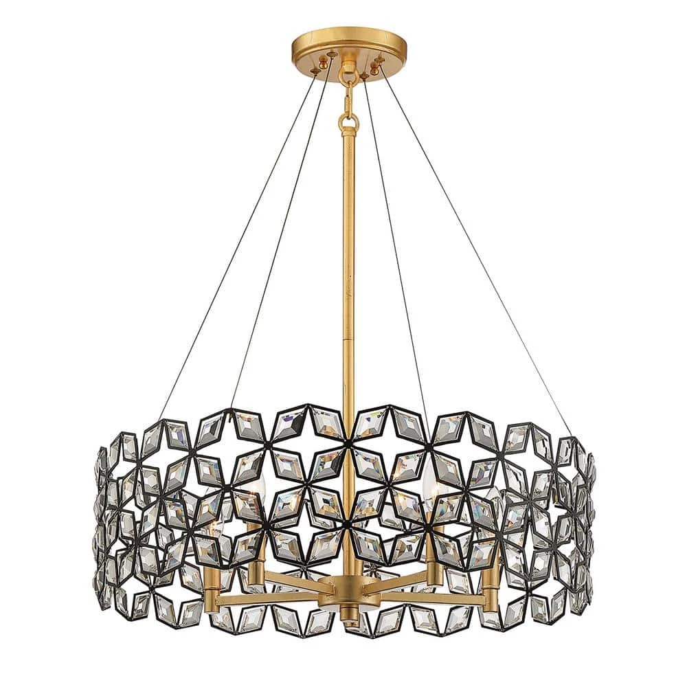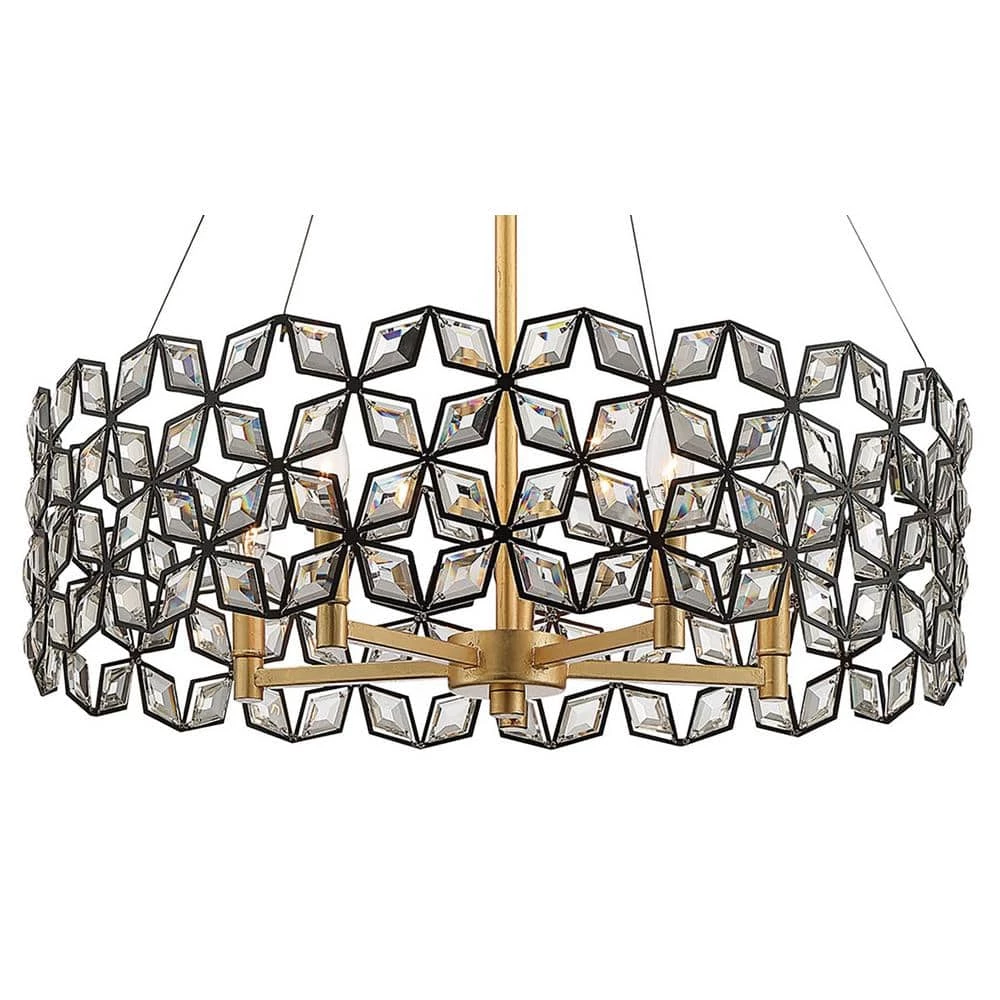 Intricate Crystals in Sand Coal Diamond frames draw the eye while the Gold Leaf interior frame adds depth to this brilliant transitional design. The Brookcrest Collection, designed by Metropolitan Lighting comes in 4 different designs and light configurations consisting of 8-light island chandelier, 5-light pendant, 2-light wall sconce and 4-light bath light. All fixtures are UL certified and damp rated for your indoor location needs. Each fixture utilizes 60-Watt Candelabra base bulbs. Nicely design with steel and crystal, but eloquent in appearance. Sparkle and glitz with everything nice, the Brookcrest Collection will dazzle you with brilliance. A great addition to the Metropolitan Lighting Family.