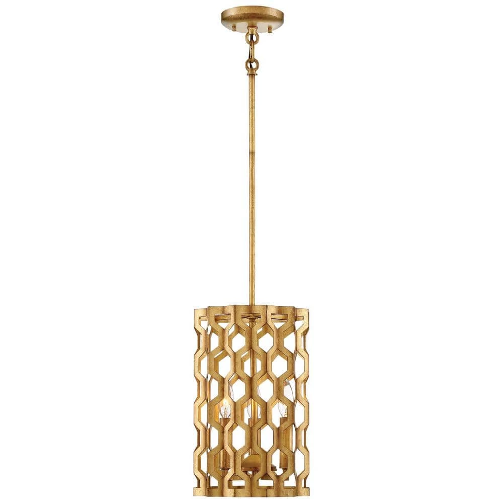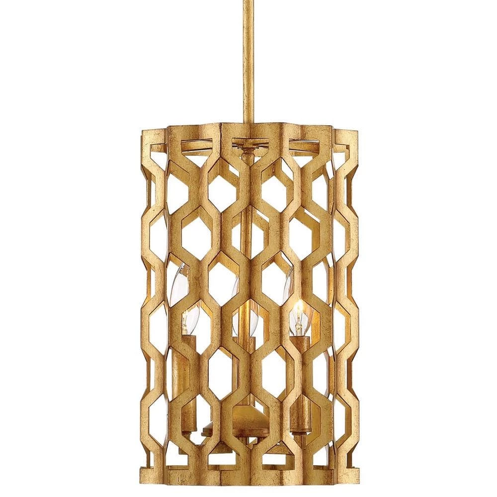 A bold and regal gold geometric metal shade pleated to surround a clean cluster of light sets a tone of elegance. The Coronade Collection, designed by Metropolitan Lighting comes in 8 different interior designs. All suited for your indoor decor styles and needs. The Coronade Collection designed by Metropolitan Lighting is first class style at its best.