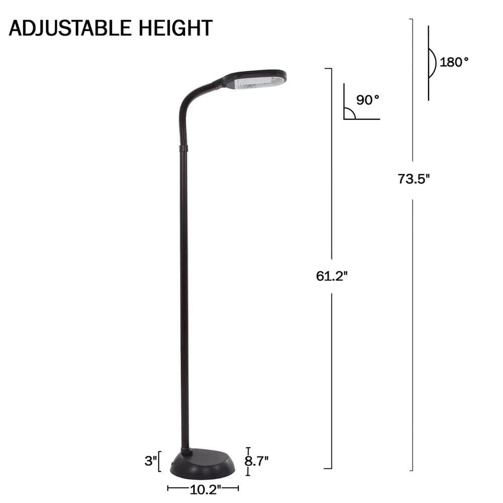 Lavish Home brings you form and function with the Natural Full Spectrum Sunlight Reading Floor Lamp that produces pure bright white illumination making colors appear more vibrant while reducing eye strain and fatigue. The supplied 27-Watt CFL Bulb gives as much light as an ordinary 150-Watt bulb, but uses far less energy. This bulb can last up to 5,000 hours, 5x longer than other bulbs. The flexible gooseneck design lets you adjust the lamp to any angle to direct light where you need it. Perfect for reading, working, or doing intricate craftwork. A must-have addition to your home or office, this lamp provides natural full spectrum daylight hues, brightening even rooms that have minimal sun exposure.
