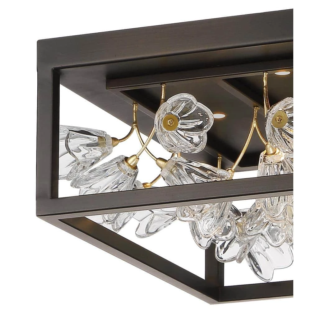 Alternating clear glass flowers with Empire Gold stems are delicately gathered in an artistic arrangement surrounded by a robust Regal Bronze frame. Circular LED spot lights provide a sophisticated ambiance, reminiscent of a morning in the French countryside. Maison Des Fleurs by Metropolitan lighting is designed in six different chandelier, pendant, wall sconce, and semi flush configurations which will accommodate your home decor needs and wants, the chandeliers are engineered to allow adjustable hanging height ranging up to 36 in. Magnificent, artistic, sophisticated, the Maison Des Fleurs, designed by Metropolitan lighting, will be like strolling through a quaint French Village.