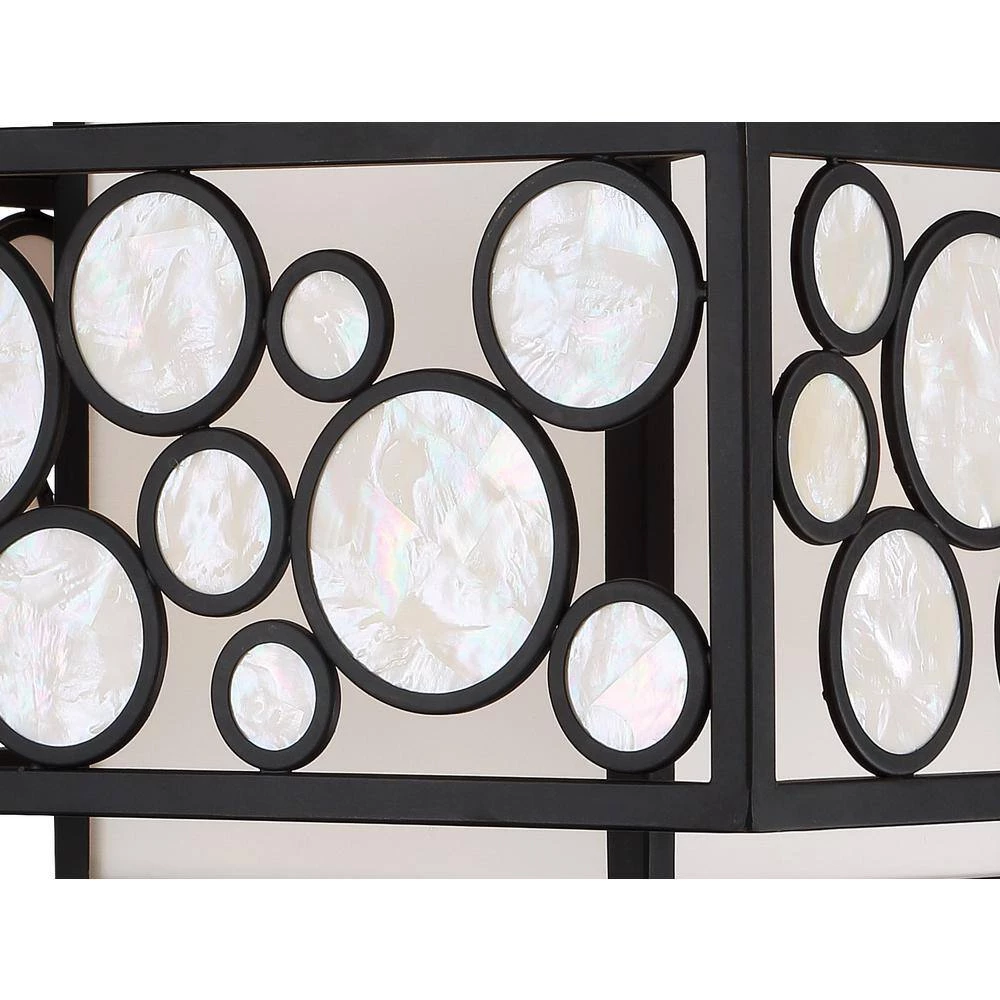 - Featuring an oil rubbed bronze finish with circles of white shell material and white linen shades