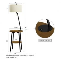 58 in. Brown and Black Mid-Century Modern LED Floor Lamp End Table with USB Charging Port by Lavish Home