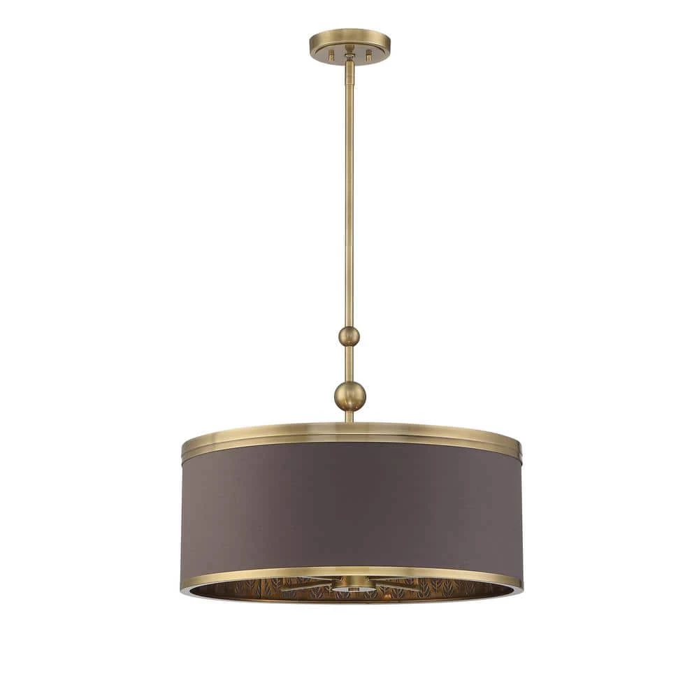 A little extra detail is Splendour. Aged Antique Brass finish with laser cut Aspen leaf inner beauty and a Chocolate linen shade is a show stopper. Splendour Collection, designed by Metropolitan Lighting, is our majestic pendant and semi-flush collection. The chandelier is engineered to allow adjustable hanging height up to 36 in. Lavish, beautiful, graceful, the Splendour Collection by Metropolitan Lighting will add elegance and refinement to your home.