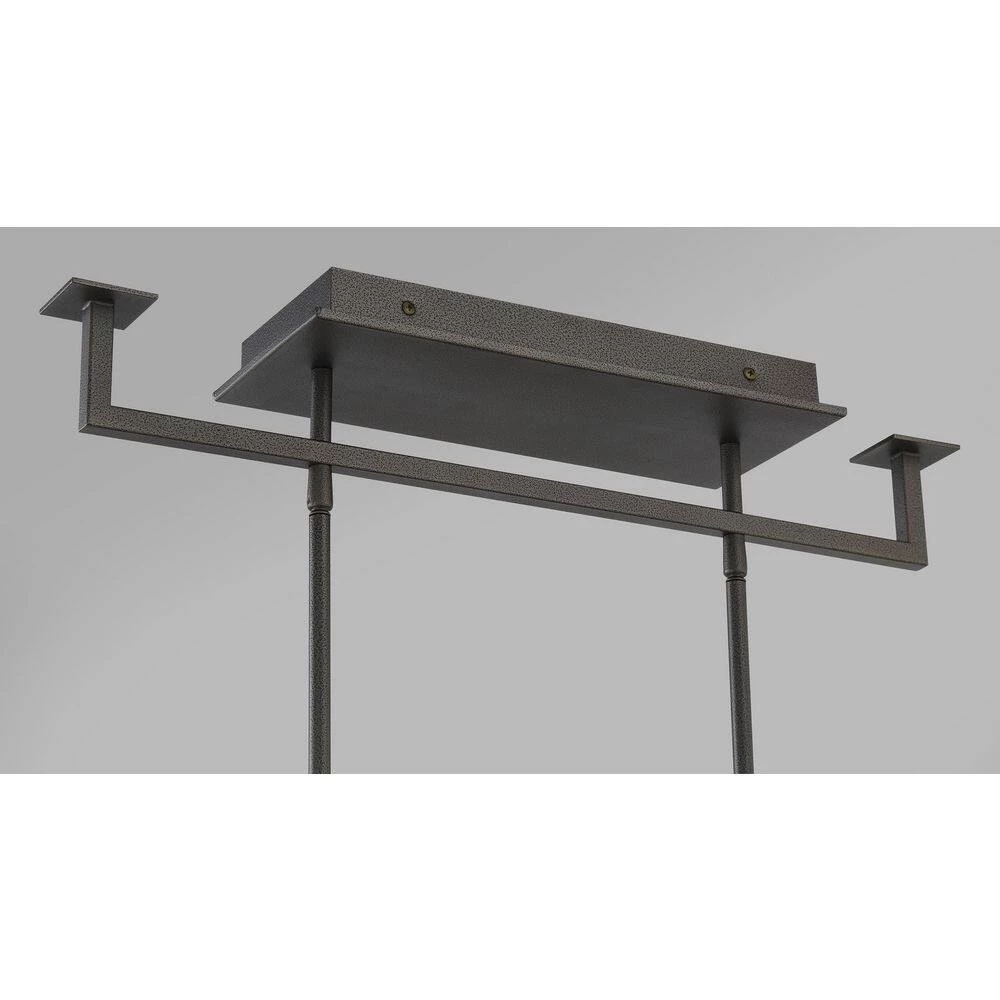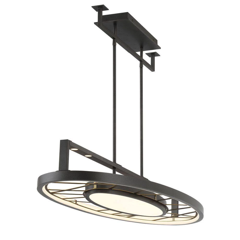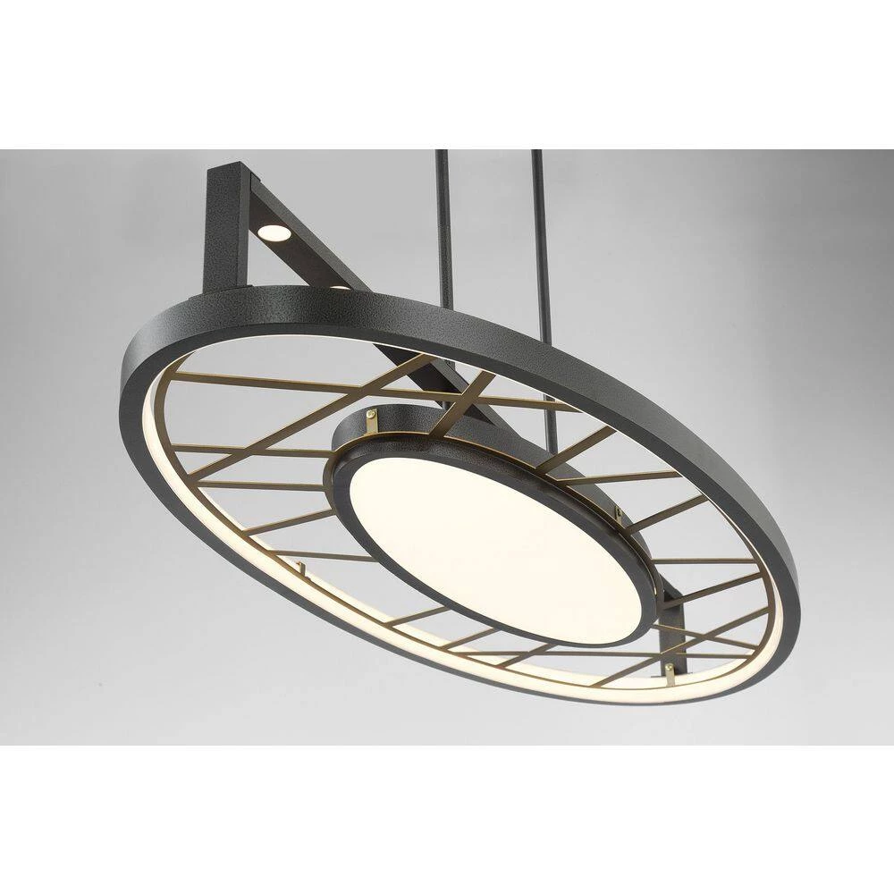 - Featuring a smoked iron and soft brass finish with etched white glass diffuser